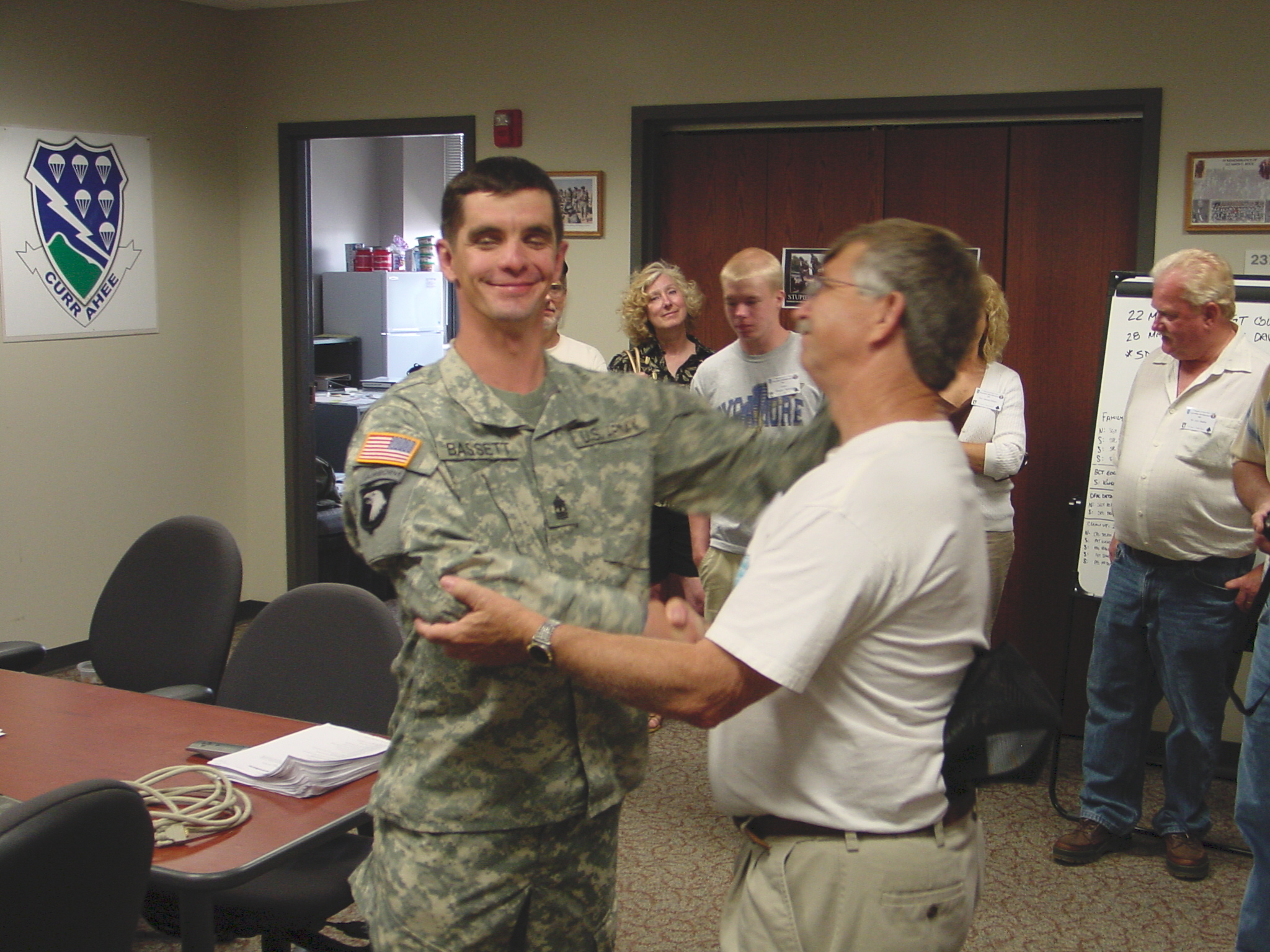 In his hand-shake, he presents each of us with one of their "Challenge Coins"