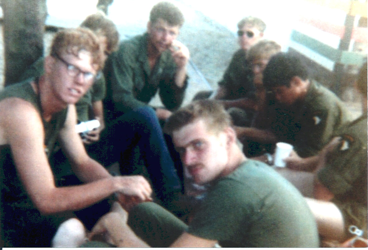 (L-R) Sgt. Ives, Ron Hogan, Doc Cafferty, Bob Radcliff, Sgt. Danny Smith, John Harvey, Terry Unger, & "Me" Steve Manthei (center front).
